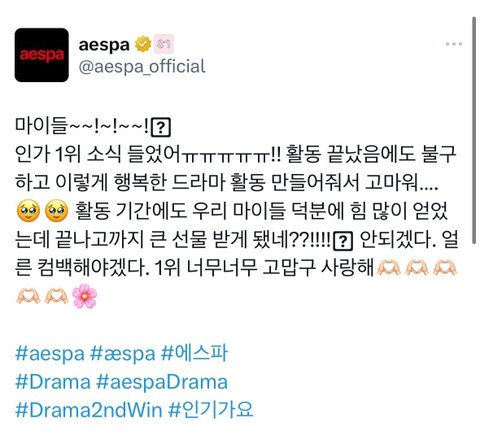 인기가요1위 에스파 카리나 소감