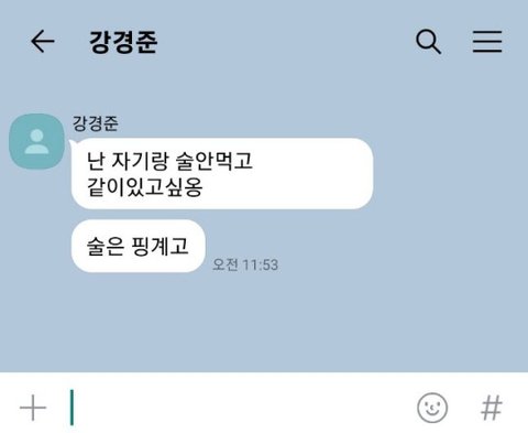 다른 날에는 "난 자기랑 술안먹고 같이 있고 싶옹. 술은 핑계고"라는 메시지를 보내기도 했다.