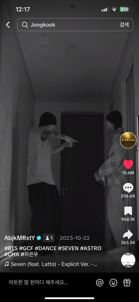 이렇게 많냐? 정국 틱톡 챌린지 영상 타가수랑 한것보다 두배 높아서 놀래ㅛ음 ㅋㅋㅋ