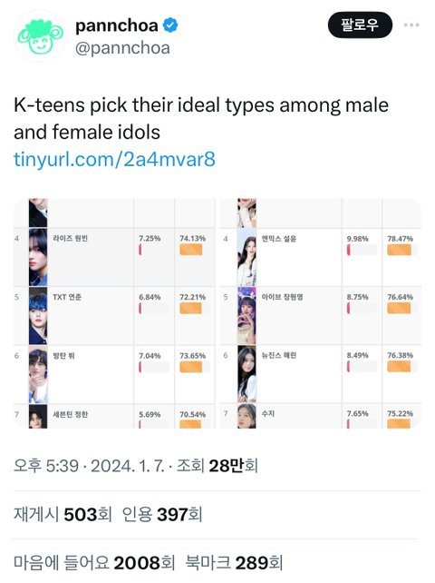 최신자 10대 이상형 월드컵 top10 (아이돌)