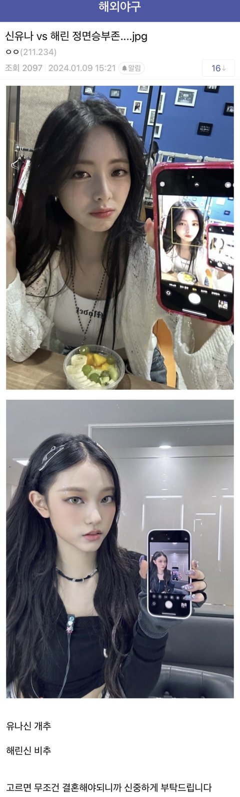 있지 유나vs뉴진스 해린 누가 더 이뻐?
