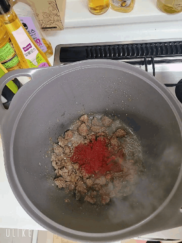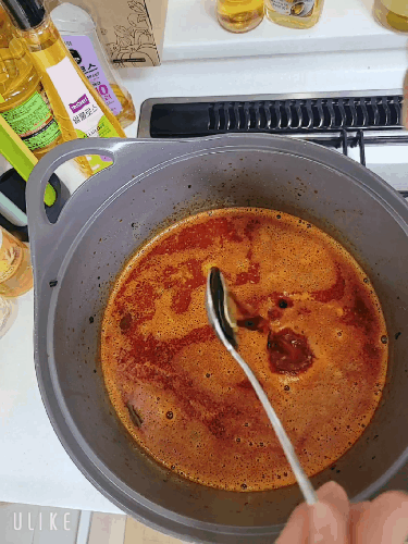 고춧가루4T 넣고 고추기름 내듯이 볶아주세요