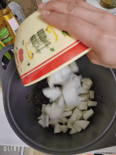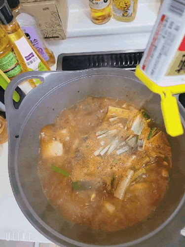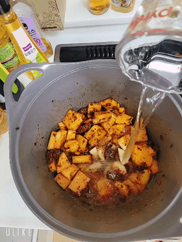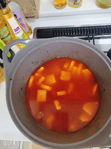 무1/2개 잘라서 넣고 고추기름에 같이 볶아주세요