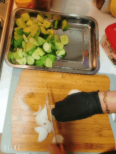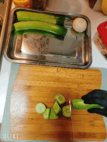 오이3개 깨끗히 씻어 크게 썰어줄게요