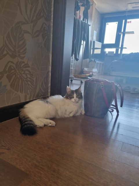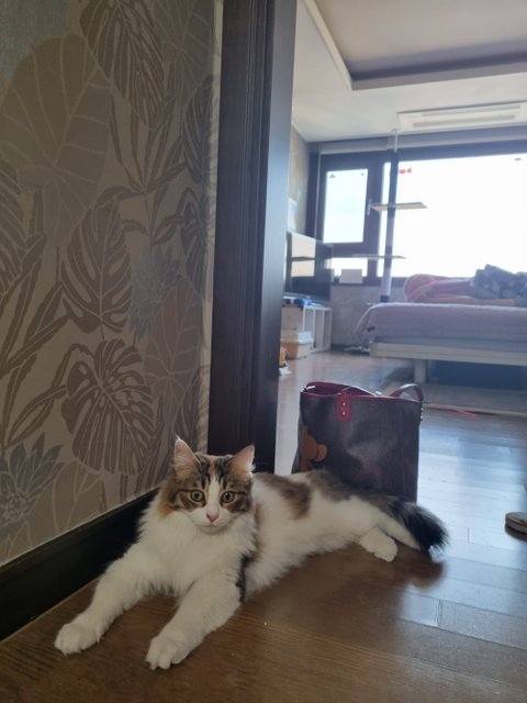 그렇게 작년 5월 입양 기회를 놓치고 좀 더 손을 탈 수 있는 기회를 주고 싶었어요.사실 아직도 만질 수 없고 물고, 할퀴니까요 ㅠㅠ병원도 못 데려가거든요. 그래도 안을 수 없지만 베리는 여집사의 가방을 잘 지켜주고, 여전히 안방 욕실 앞에서 기다리고 있답니다. 이제 가까이 가서 사진을 찍어도 반 정도는 도망가지 않아요~