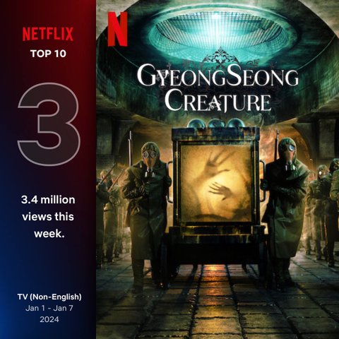 ‘경성크리처’ 넷플릭스 비영어권 글로벌 TOP10 3위
