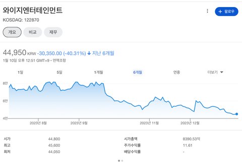 시총 8천억까지 떨어진 YG