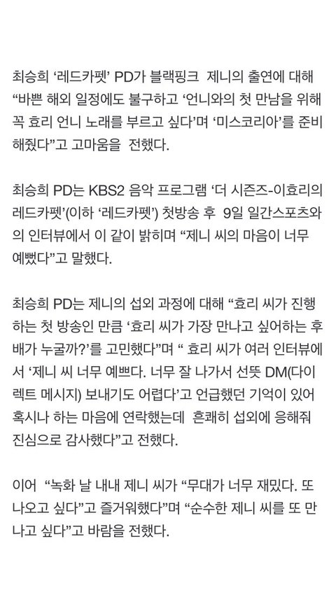 이효리의 레드카펫 PD ''제니 마음 너무 예뻐''