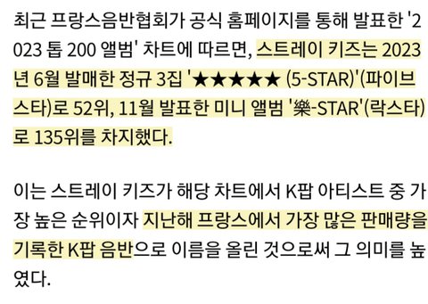 스키즈 프랑스 음반협회 2023 톱앨범차트
