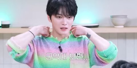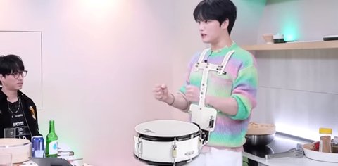 재중(군악대 출신) : 북 같은 거 매달고 이렇게 다니잖아