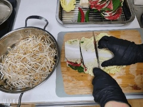 냄비에 숙주깔아주고 냄비높이에 맞게 배추를 잘라주세요