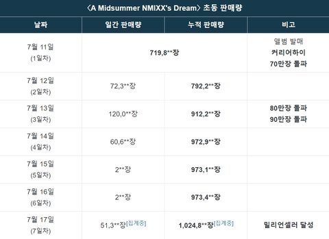 초동이 103만인데, 총판이 83만인 엔믹스