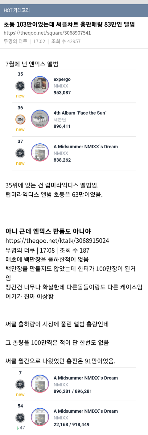 초동이 103만이었는데 총판이 83만이라는 기적의 엔믹스