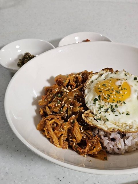 김치참치덮밥이었던 것 같아요.
