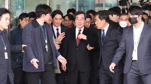 (사진4 설명) 더불어민주당 이낙연 전 대표가 2024년1월11일 탈당 및 신당 창당을 선언한 뒤 회견장을 나서고 있다. /연합뉴스