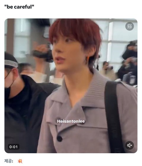 데뷔초부터 매번 조심하라고 말해주고가고 오늘도 질서 안좋아서 경호원이 그냥 막 밀치니까 팔붙잡음