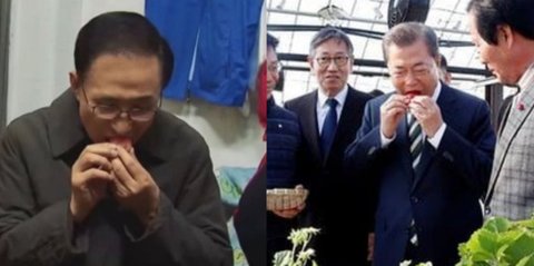 와 딸기 두손으로 먹는 아이돌 또 떴다 ;;