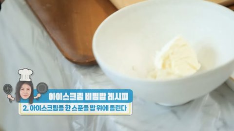 2. 아이스크림 한 스푼을 밥 위에 올린다
