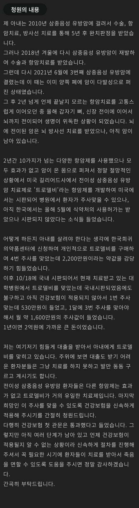 제발 유일한 희망인 트로델비의 신속한 건강보험 적용에 관한 청원 부탁드립니다.