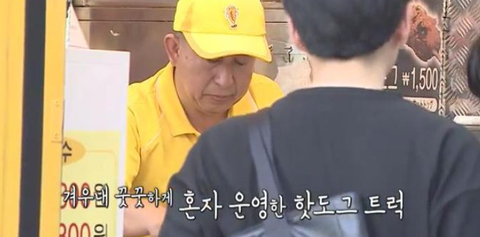 겨울내내 혼자 외로이 나와서 그 자리에서 핫도그 장사를 하셨어요
