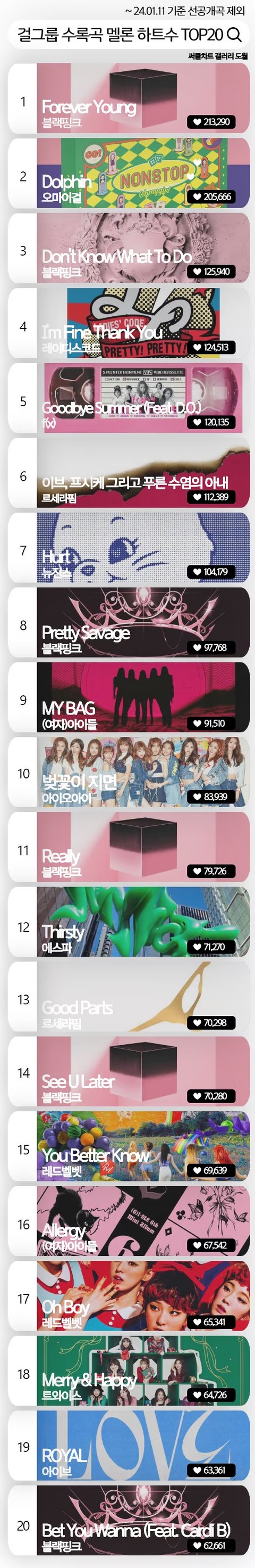 블랙핑크 오마이걸 레이디스코드 fx 르세라핌 뉴진스 여자아이들 아이오아이 에스파 레드벨벳 트와이스 아이브