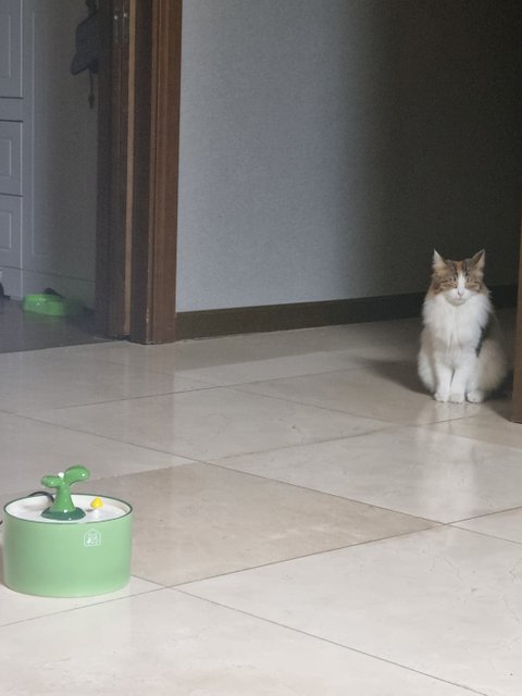 그리고 거실에서 TV를 보고 있으면 어느 새인가 봐서 저를 지켜보고 있어요. 물론 가까이 가서 사진 찍으려고 하면 다시 도망가서 줌을 당기어 찍어야 하지만 이제 제법 그대로 앉거나 누워서 졸기도 해요. 넘 귀엽죠?