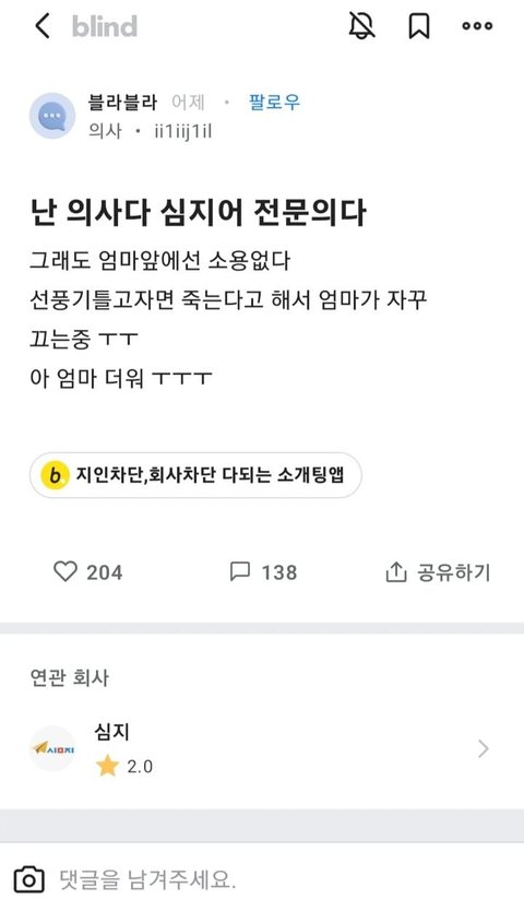 선풍기 틀고자면 죽는댘ㅋㅋㅋㅋㅋ