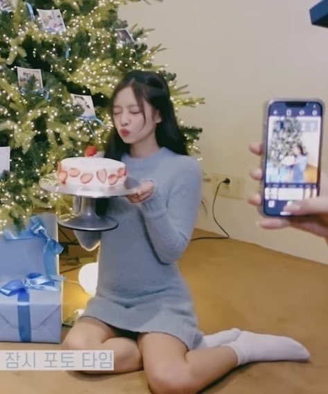 그 다음 선물 가득한 트리 앞에서 OA 회사 직원분들한테 생일 축하 받음ㅜ