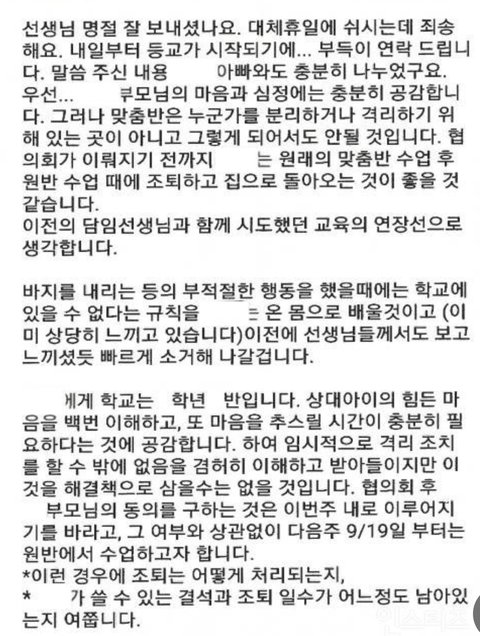 교사가 사과했을때 본인 아이가 그동안 끼친 해를 생각해서라도