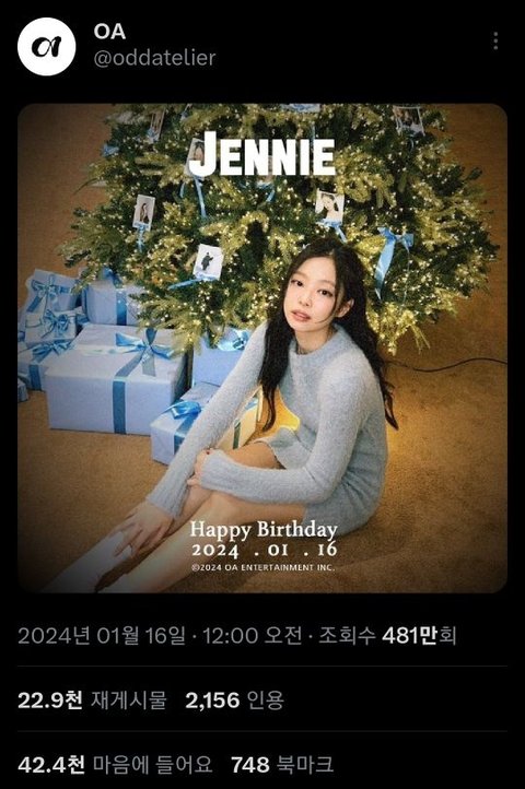 제니 레이블 공계 제니 생일 축전 올라온거