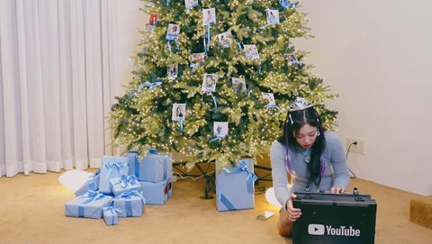 직원분들이 꾸며준 커다란 제니 트리 앞에서 기념 사진 찰칵