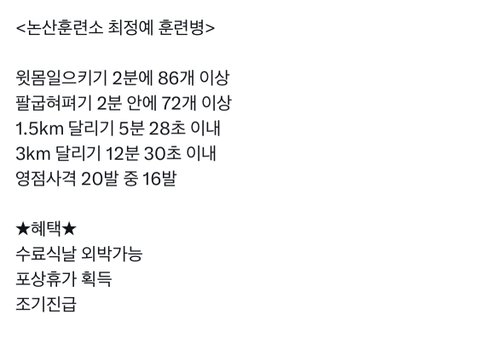 최정예훈련병이면 복무일수깎아주라고