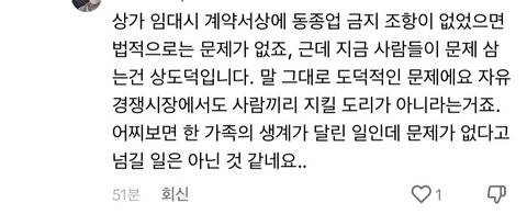 일반인이 옆에 나랑 똑같은 업종의 가게를 차려도 충격일텐데 심지어 유명유튜버고 친분있는 유튜버들 우르르 몰려와서 촬영하고 홍보해주고 거기만 사람몰린다고 생각해보셈 복창이터지지 그리고 망해도 경험이라고 생각하면 된다는 발언이 더 문제임 옆집 사장님은 생계가 달린건데