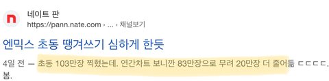 이번에 엔믹스 판매량도 심각하게 안좋던데 큰일이네