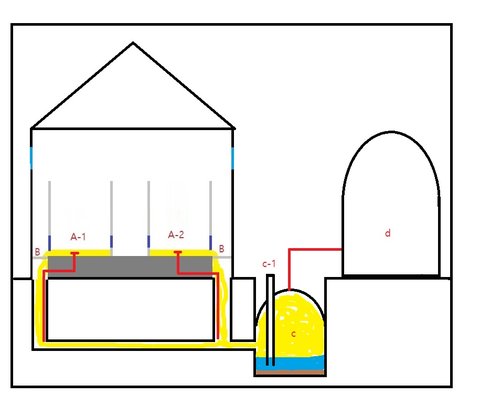 이런경우 물로 청소를 해주면서, 밑바닥을 C를 정화조처럼 만드는거야.