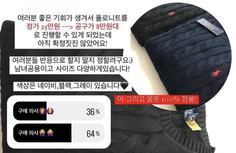 어떤 인스스가 폴로 니트 공구 구매의사 있냐고 올렸는데 64퍼가 없다고함..