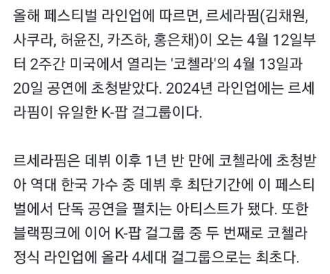 르세라핌 4세대 최초 코첼라 초대 ㄷㄷ..jpg