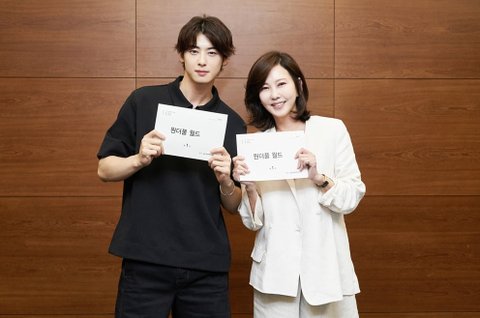 김남주와 차은우가 주연을 맡은 드라마 '원더풀 월드' 대본리딩 현장이 18일 공개됐다.