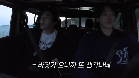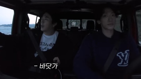 달리는 차 안에서 바닷가가 보이자