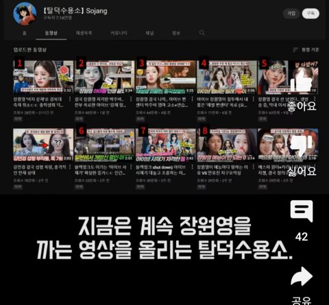 영상 100개 남짓인데 장원영 영상만 30개 넘었었대ㅋㅋㅋ 8번 연속으로 장원영 영상만 올린적도 있음