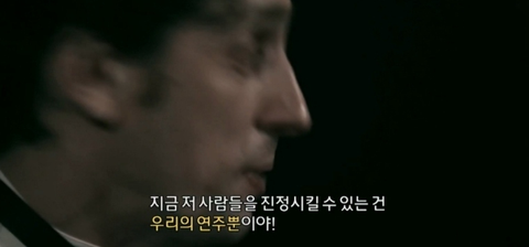 사람들을 진정시키기 위해 바이올린 연주를 이어 갔지만....