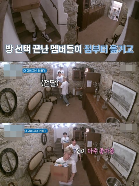 당연히 짐은 장보기조 아닌 멤버들이 다같이 들어주러 옴
