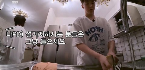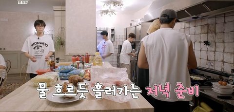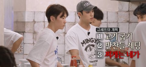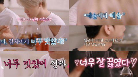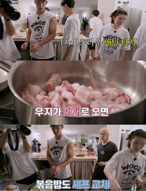 찌개담당 도겸 대신 우지가, 볶음밥 볶던 민규 대신 디에잇이 자연스럽게 교체