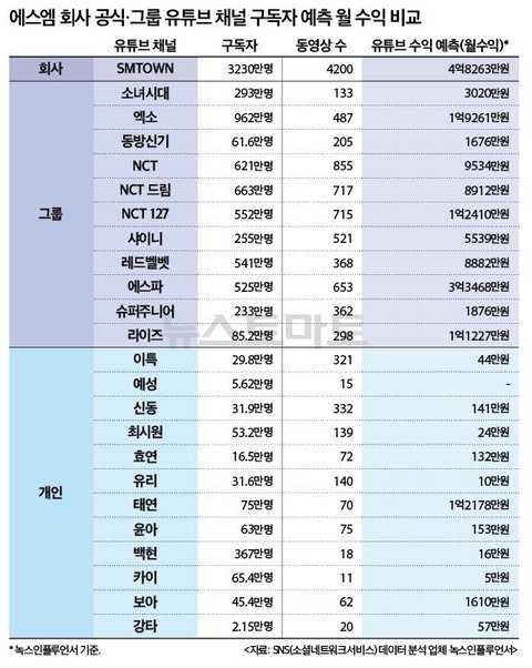 업계 관계자는 "SM엔터 소속 가수들의 개인 유튜브 채널만 보더라도 회사, 그룹을 떠나 개인 자체 브랜드화 전략이 얼마나 어려운지 보여주는 사례"라며 "태연의 경우 솔로 가수로서 음원, 뮤직비디오 영향력이 강하다 보니 특별한 케이스라고 볼 수 있다"고 말했습니다.