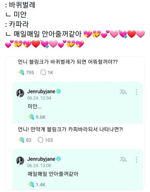 그냥 제니 카피바라 홍보대사하자.... 또 자기 카피바라 닮았다니까 고마워요래ㅋㄲㅋㅋㅋ