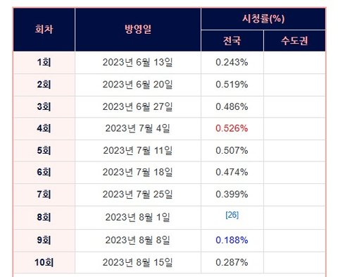 1회에서 올라가는가 싶더니 막화에선 0.287%로 끝남