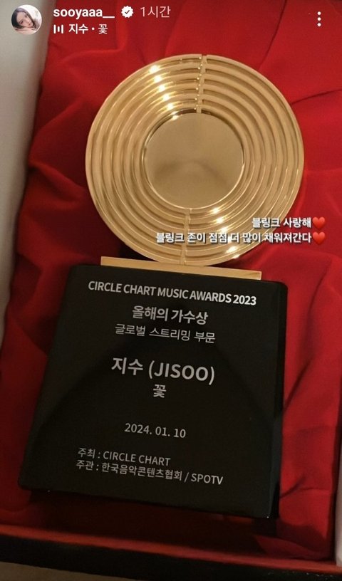 마마 3관왕에 이어 써클차트상까지 지수 ㅊㅋㅊㅋ