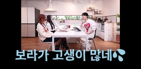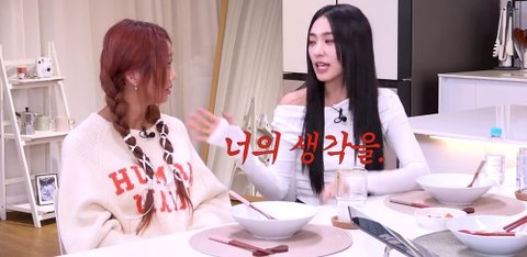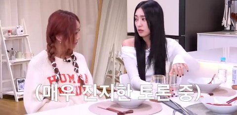 보라가 하는 말에 진지하게 들어주며 답하는 효린