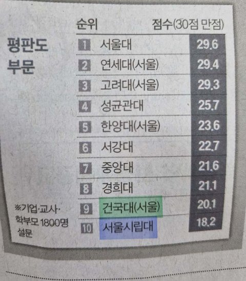 건대에 따인 대학 재학생들은