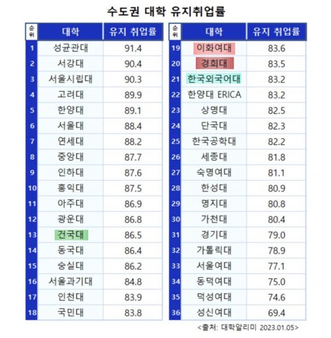 취업의 질을 결정하는 유지취업률도 개높음